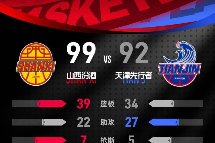 在第四节的较量中,天津先行者开局表现不佳,而山西汾酒则显示出强劲的状态,迅速将比分抹平并一度领先达到9分。尽管天津先行者随后逐步缩小分差,但未能逆转局势。最终,山西汾酒凭借出色的发挥,以99-92赢得比赛,完成了惊险逆转。